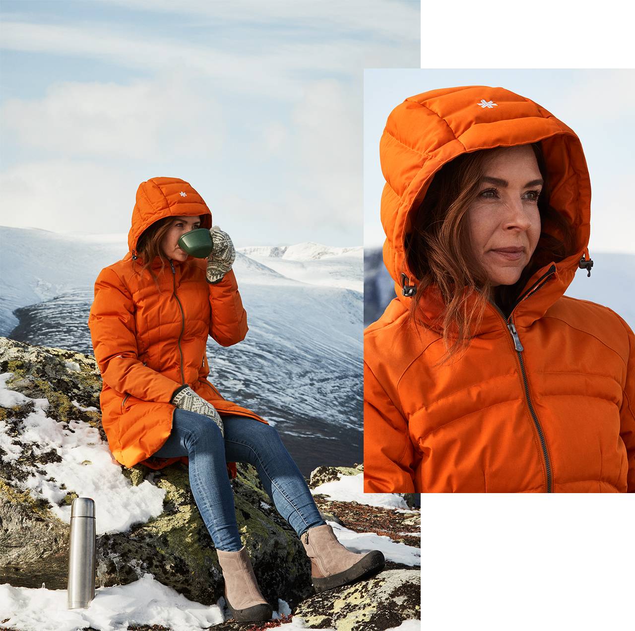 Áhkkás fokus ligger på funksjon uten å kompromisse med stilig design. Det er en tanke bak hver eneste detalj. Den beste måten å holde varmen på når det er kaldt, er å kle seg i lag på lag. Du kan enkelt legge til hvis du fryser, eller ta bort om du blir for varm. Kroppen din produserer varme, og Áhkká jobber for å beholde den på best mulig måte.